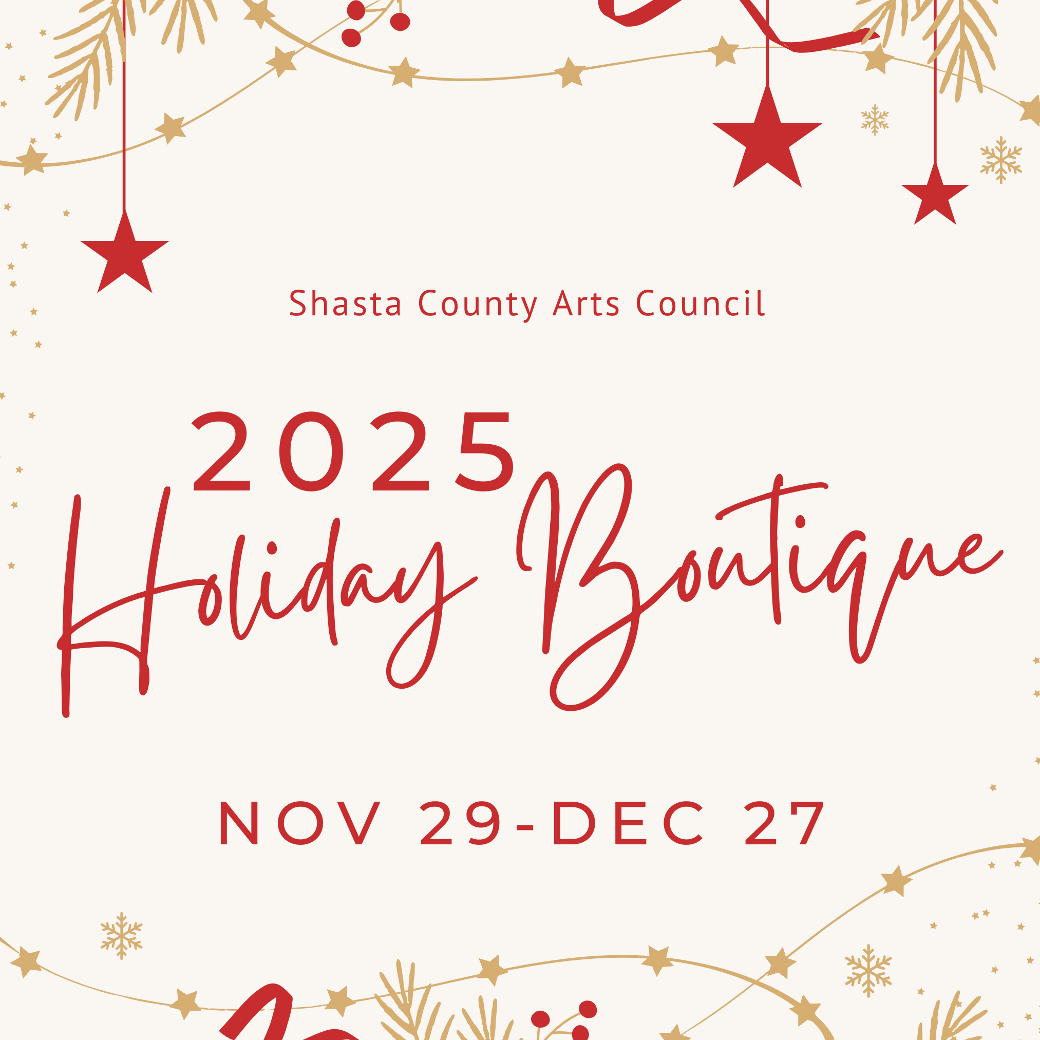 The Shasta County Arts Council is inviting artists and artisans working in a variety of media to submit photos of their art for consideration for the Annual Holiday Fine Art & Craft Boutique to be held from November 29 through December 27, 2025 at Old City Hall. The show is part of Small Business Saturday and December First Friday Downtown.