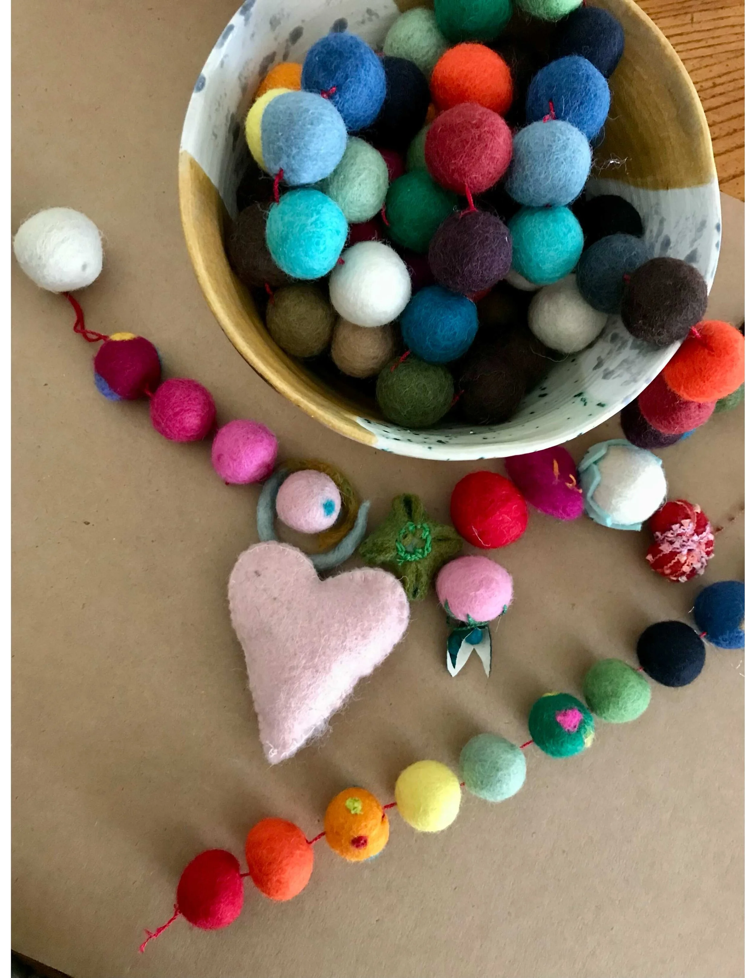 FELT GARLANDS: Create fanciful garlands by stringing felt beads YOU design using needle felting and wet felting techniques. $40