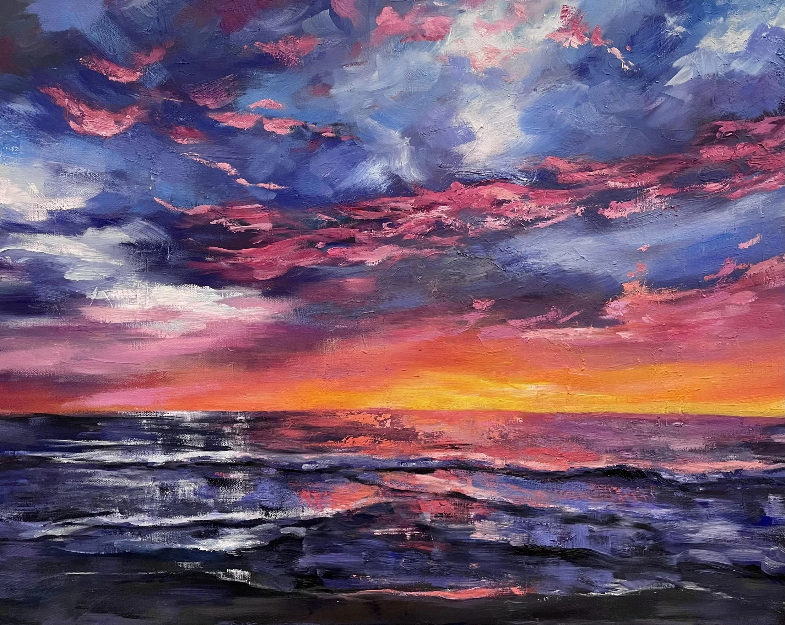 Margaret’s current body of work studies the relationship between landscapes and the human experience. This series focuses on using atmosphere and color to imbue memory into a piece– to make an artwork resemble the hazy, exaggerated images of memory. She wants to capture the magic and feeling of an experience that cannot be captured by camera.